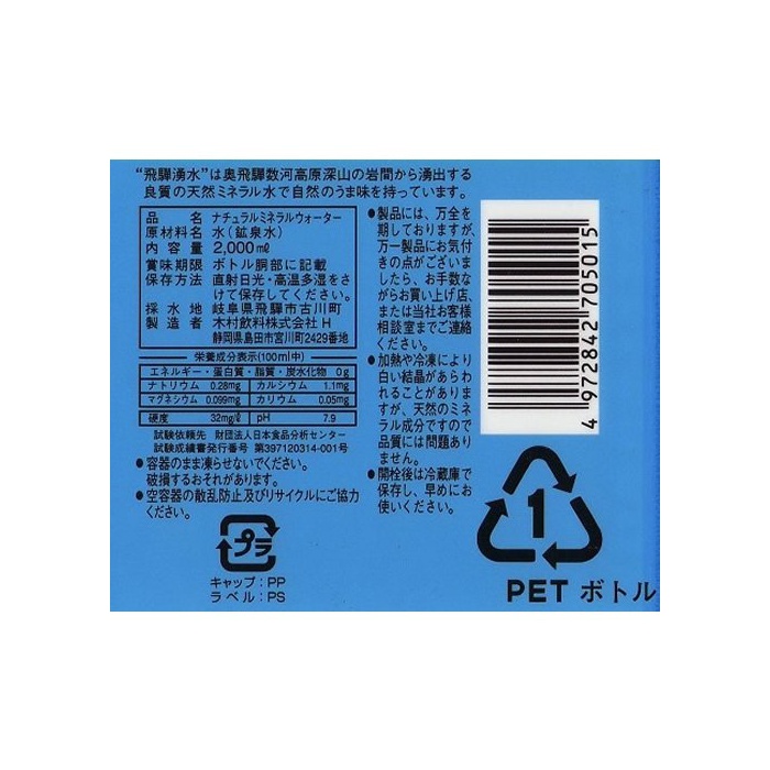원본상품명: 木村?料 飛?湧水 2000ml×6本