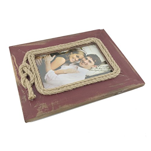 4x6 Inches Wooden Jute Rope Picture Frame with Glass Front (Red)