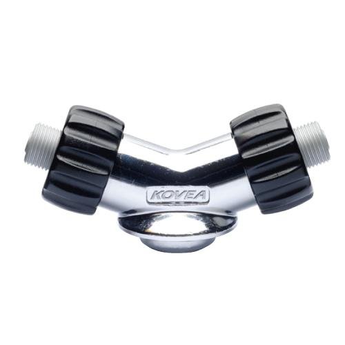 The kovea 2 way adapter features a single lindal valve input and two lindal valve outputs