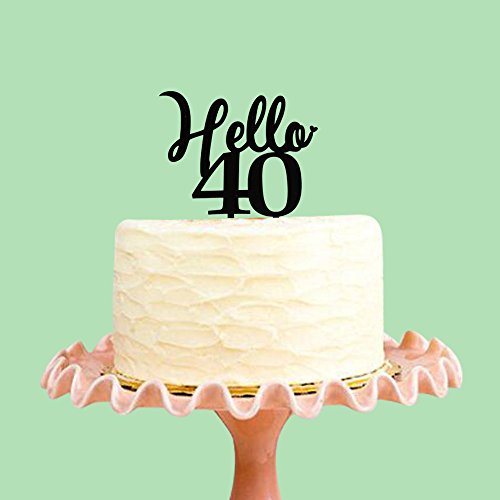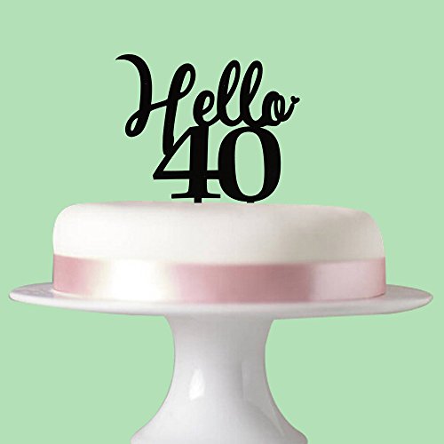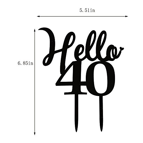 Hello 40 cake topper for 40th birthday party decorations black acrylic cake topper
