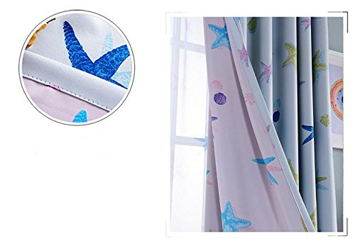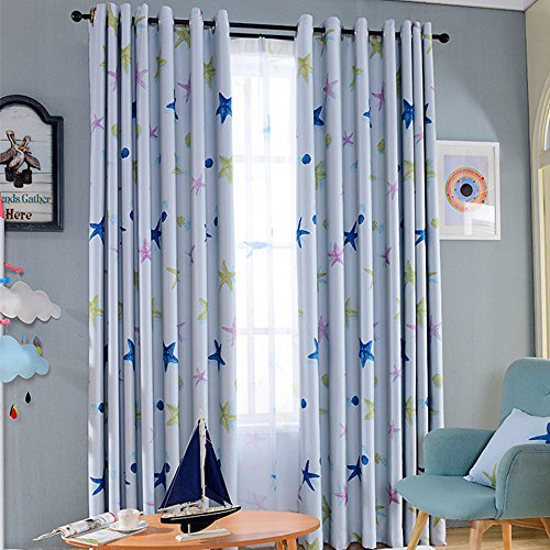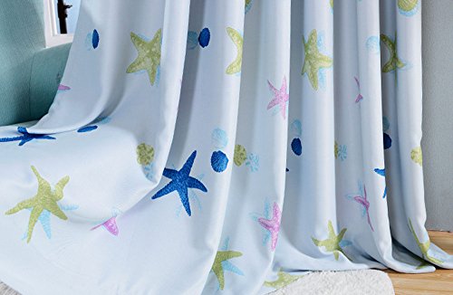 Nibesser 85% Blackout Curtains for Boys Room Darkening Thermal Insulated Blackout Drapes Starfish Print Grommet Top Panel Window Treatment for Nursery Kids Room,2 Panels(42W x 63L Inch, Blue)