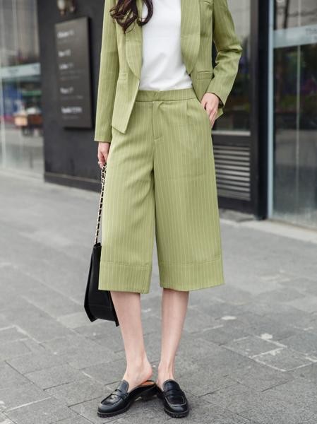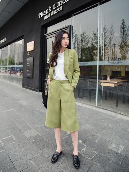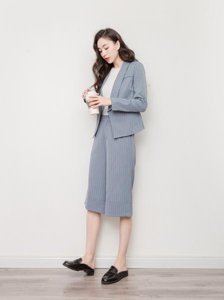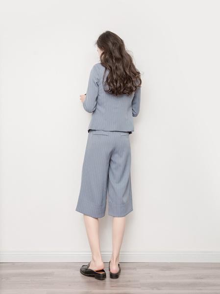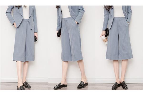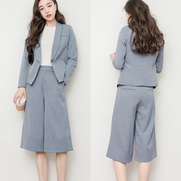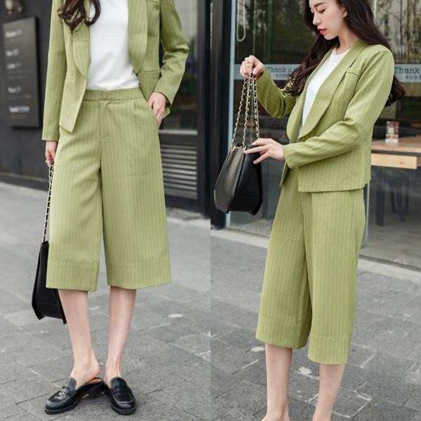 涼しげストライプ スーツ セットアップ ガウチョパンツ