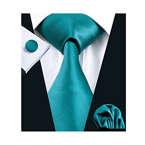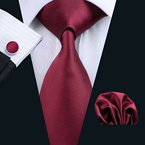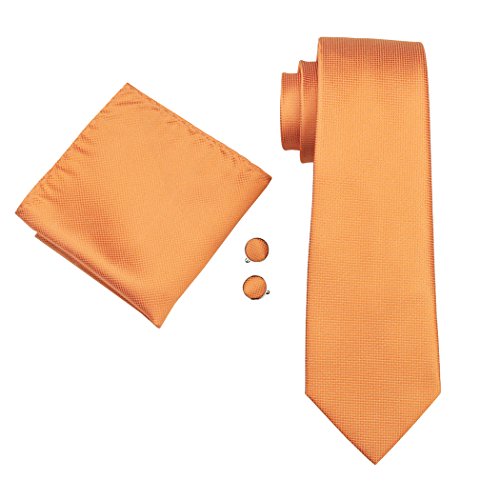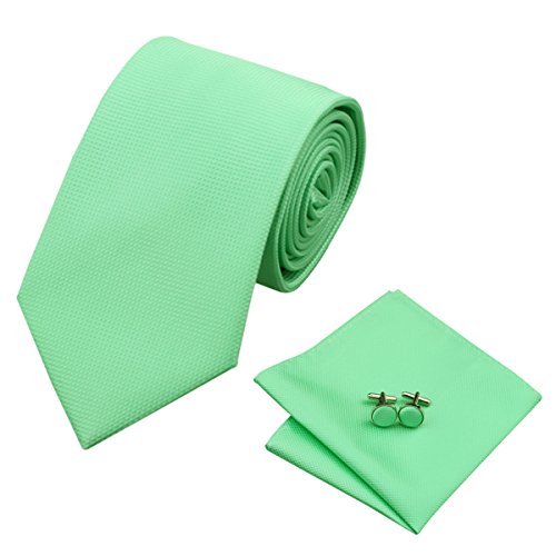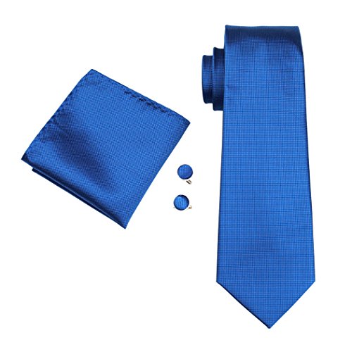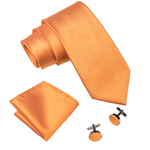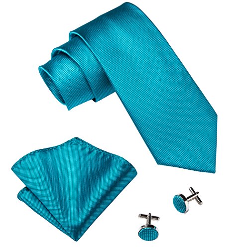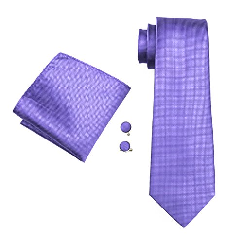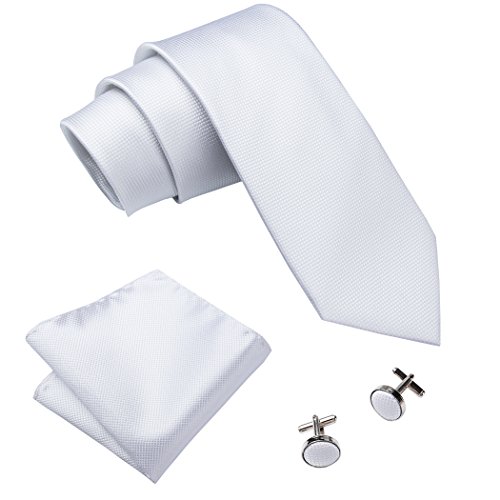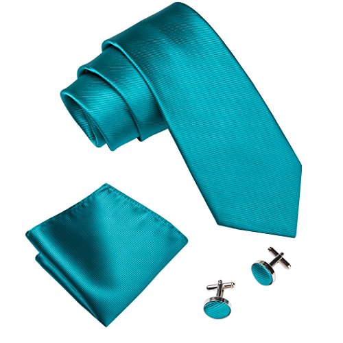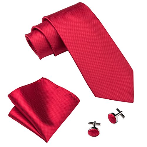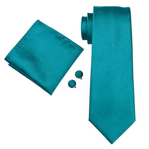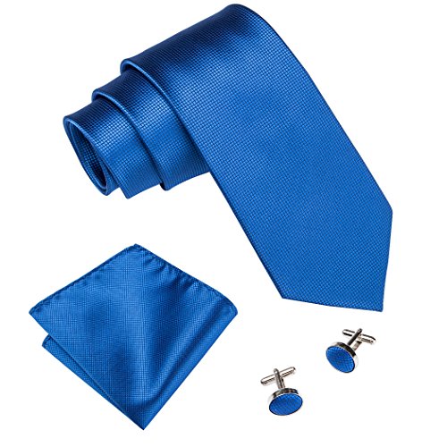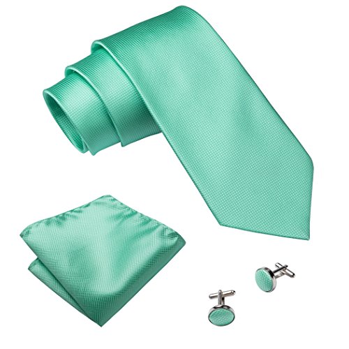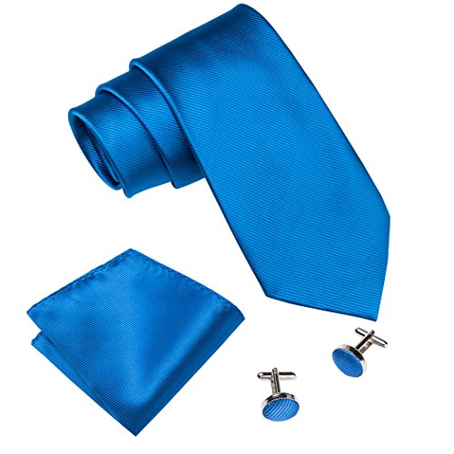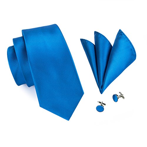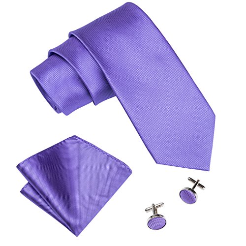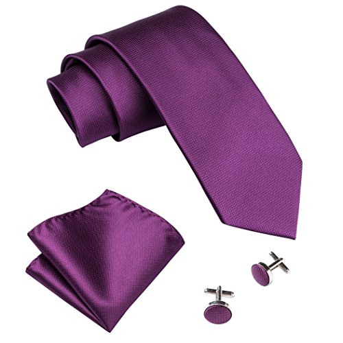 | Barry.Wang Mens Tie Set Handkerchief Cufflinks Solid Color Neckties Plain Silk Ties |