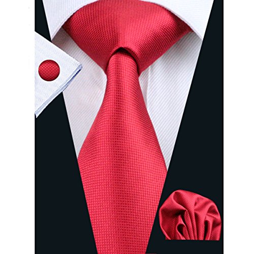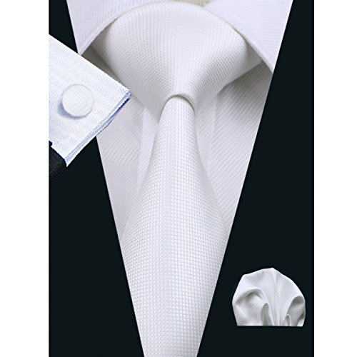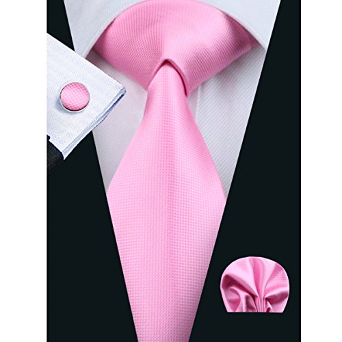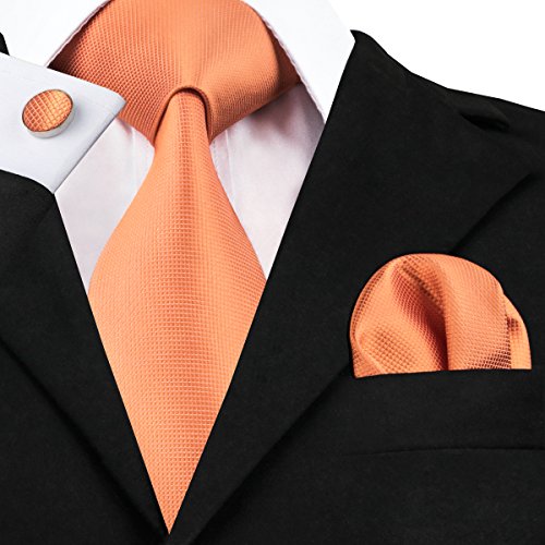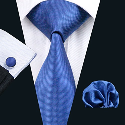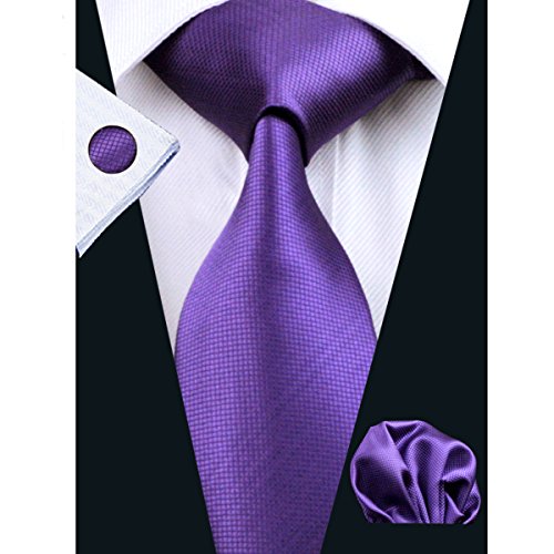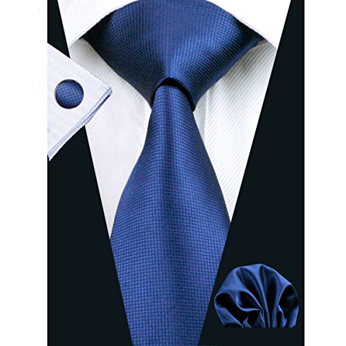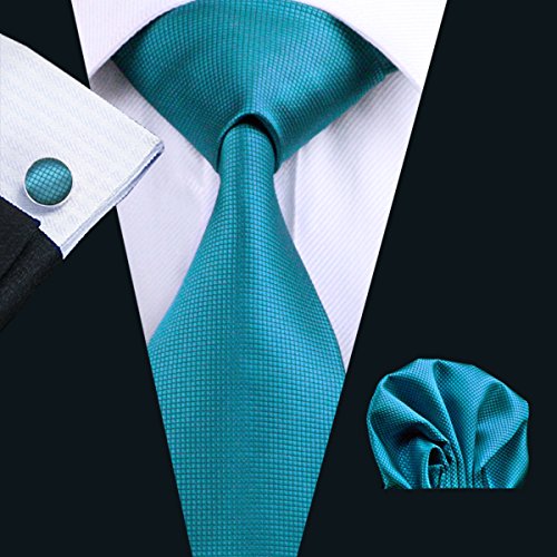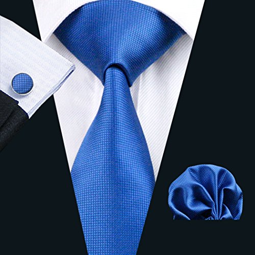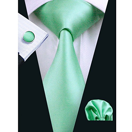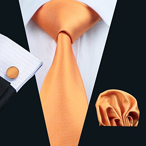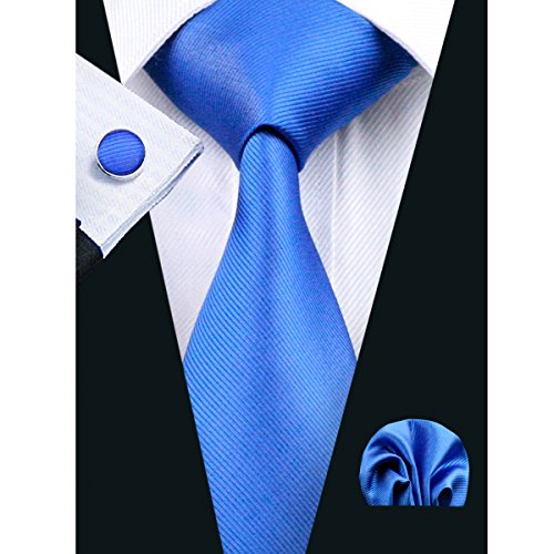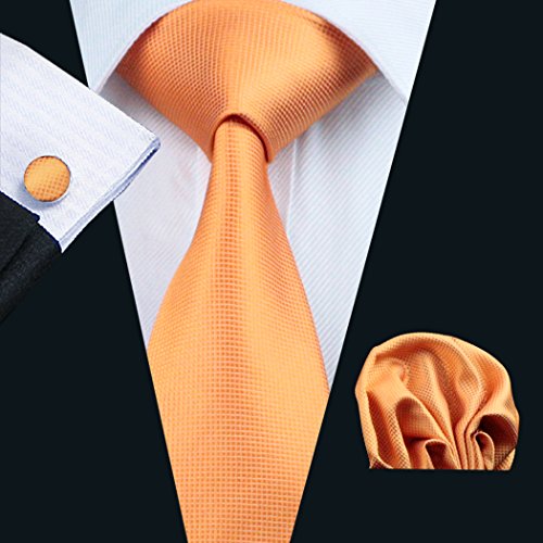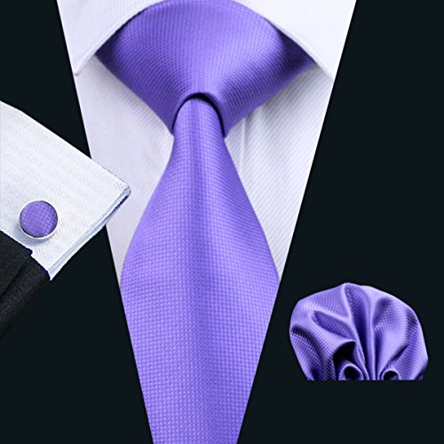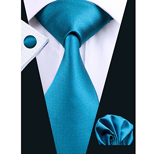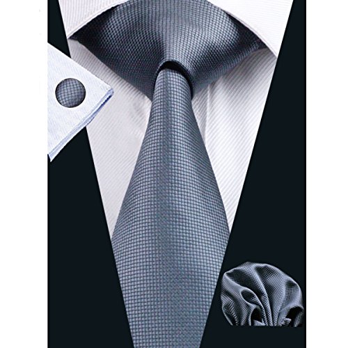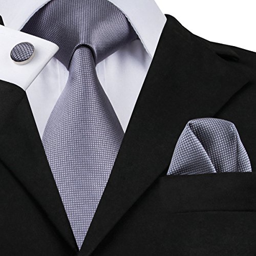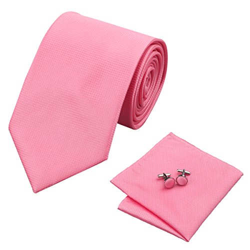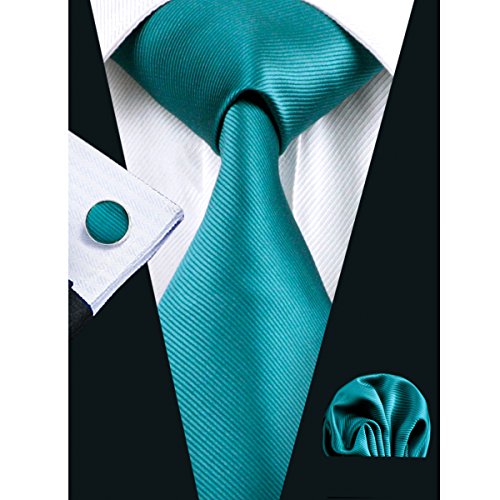 | Barry.Wang Mens Tie Set Handkerchief Cufflinks Solid Color Neckties Plain Silk Ties |