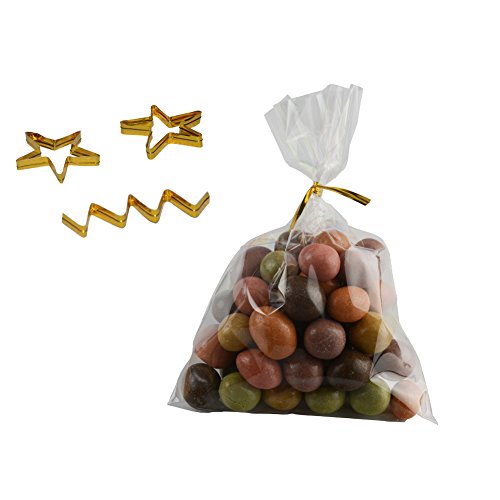 Multipurpose Bags Flat opp bags provide excellent clarity for presenting food content such as cake pops, candy, chocolate, cookies, nuts, and any non-food things. Use these bags to showcase edibles and treats in restaurants, farmers markets, bakery, and retail stores. Unit Count: 200 cellophane bags with 200 twist ties. Unit Size: Flat bag 4"x6", twist tie 4" long. Material: Clear Cellophane, food grade. 0