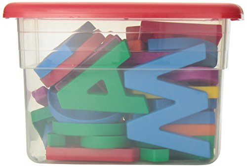 - Feature : Magnetic jumbo-sized uppercase letters / Set contains 42 pieces / Each letter is 2 1/2 inches tall / Colors include red, blue, yellow, orange, green and magenta / Includes sturdy plastic storage tub