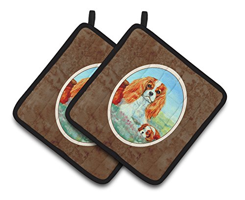 Caroline's Treasures Cavalier Spaniel Momma's Love Pair of Pot Holders 7019PTHD, 7.5HX7.5W, Multicolor