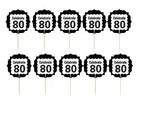 CakeSupplyShop Celebrate 80 (80th Birthday / Anniversary) Food Decoration Picks for Cakes and Cupcakes/Food Decoration 12 count