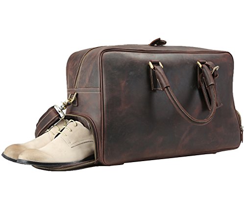-. Feature : Top quality Genuine Cowhide Leather ,Hardware are made of Bronze with Strong Zipper / Bag Dimension:51(L)*24(W)*30(H)cm / 20(L)*9.5(W)*12(H) inch, Net Weight:2.2KG / Include Laptop Padding*1, Inside Zipper pockets*1, Main Compartments*1, Side Shoes Pocket*2. Inside phone pocket*1 and wallet pocket*1, Easy to take up to 15.6 inch laptop,Ipad,Books,Clothes and so on / Easy to take your shoes together, Great Travel and Sport Partner! / Vintage Leather Bag, Good for Weekend Sport,Vocation or Business Trip