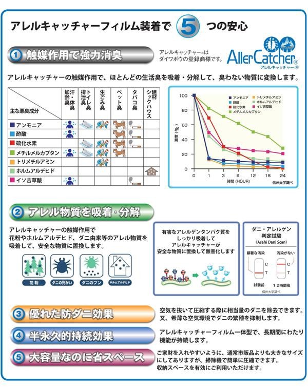 | アレルキャッチャーフィルム一体型の消臭・防ダニ圧縮袋!! |