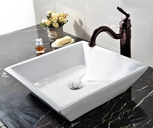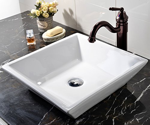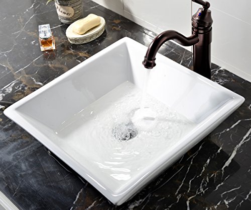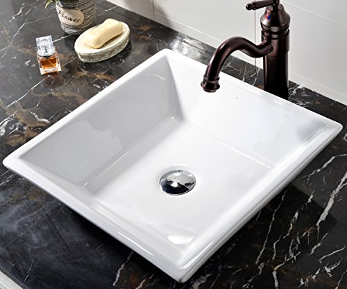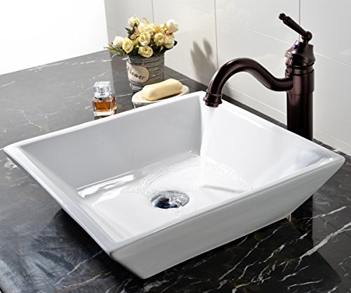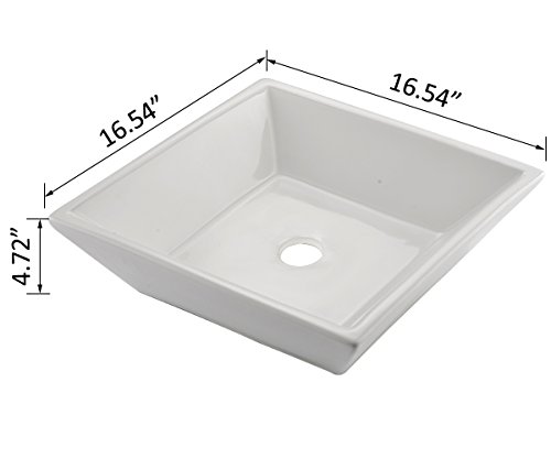 VCCUCINE White Square Above Counter Porcelain Ceramic Vessel Vanity Bathroom Sink Art Basin