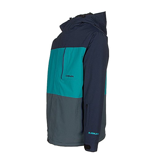 Studio : Armada Publisher : Armada Binding : Misc. Product Description The Armada Mantle Jacket is a perfect option for teenagers or new school riders looking for some sweet style and function. Loaded with everything you need, the Mantle Jacket uses 80g of Polyfill Insulation in the body for extra warmth, and 60g in the sleeves for a high range of motion while you are getting after it on the slopes. All of the seams are 100% sealed to keep you high and dry. 10k/10k waterproof and breathability ratings will keep you dry when it is wet or snowing, and when you start to sweat. Pit Vents will help you regulate your temperature should you start to overheat. The Mantle has an Internal Goggle Pocket that will allow you to always bring a fresh set of lenses with you for changing light conditions, while an External Music Pocket allows you to jam your own tunes anytime you are on the mountain. Features: Helmet Compatible Hood with Reinforced Brim, RF Pocket on Sleeve, External Access Music Pocket with Headphone Port, Internal Goggle Pocket, Microfleece Chin Guard, Pit Vents, Adjustable Cuff, Reactive Hem with Inner Pocket Adjustment, Lycra Wrist Gaiters, Adjustable Powder Skirt with Lycra Suspension, Jacket to Pant Snap Interface Exterior Material: Nylon/Polyester, Insulation Weight: 80g Body/60g Sleeves, Taped Seams: Fully Taped, Waterproof Rating: 10,000mm, Breathability Rating: 10,000g, Hood Type: Fixed, Pit Zip Venting: Yes, Powder Skirt: Yes, Warranty: One Year, Battery Heated: No, Race: No, Type: Insulated, Jacket Fit: Regular / Loose, Length: Medium, Insulation Type: Synthetic, Waterproof: Mild Waterproofing (5,001 - 10,000mm), Breathability: Mild Breathability (5,001 - 10,000g), Cuff Type: Velcro, Wrist Gaiter: Yes, Waterproof Zippers: No, Cinch Cord Bottom: No, Warmth Factor: Warm, How Does This Fit?: Slightly Big, Model Year: 2017, Product ID: 439811, Model Number: 1020016-028-M, GTIN: 0847165077726 0