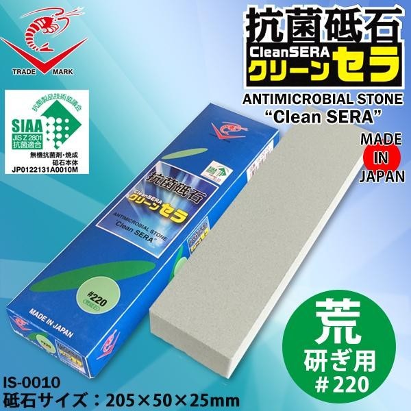 角砥石業界で初めてSIAA認定のJIS抗菌に適合した抗菌砥石です。 製造国:日本 素材・材質:緑色炭化ケイ素 商品サイズ:砥石サイズ:205×50×25mm 重量:約540g 仕様:粒度:220(荒研ぎ用) ※メーカー直送品 ご注文後7~8営業日後の出荷となります