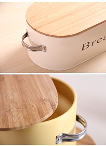 The KWELS Bread Box is the perfect storage container for bread, cookies and anything you want to keep within reach on your kitchen counter. Crafted from steel, it measures 11.81" long. Material: Coated Steel Bamboo Colors: Beige Size:11.81"L*6.9"W*4.33"H Features: 1. Great for storing bread, cakes or sandwiches. 2. The antiseptic wood lid can also be used as cutting board, highly practical. 3. Large-capacity bread box can store a quantity of bread. 4. Made of high-quality coated steel, durable and safe for food. 0