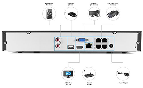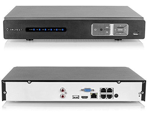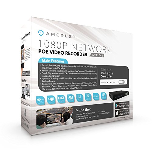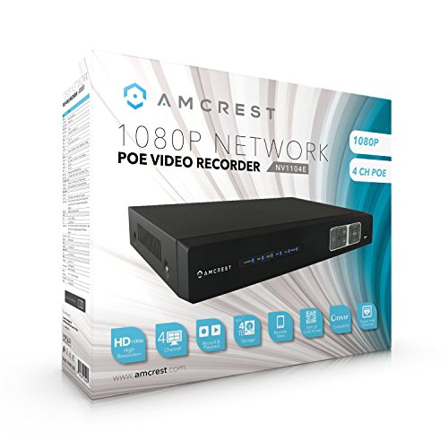 Amcrest NV1104E 1080p POE NVR (4CH 1080p/3MP/4MP/5MP) Network Video Recorder - Supports up to 4 x 1080p (2.1MP) POE IP Cameras @ 30fps Realtime, Supports up to 4TB HDD (Not Included) and More