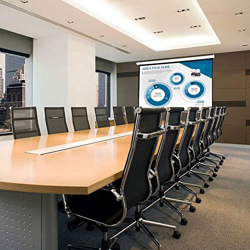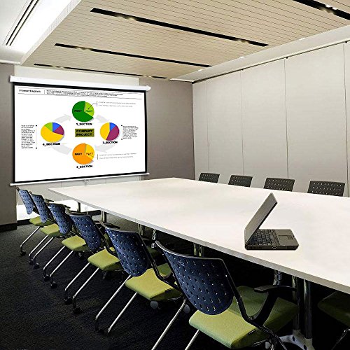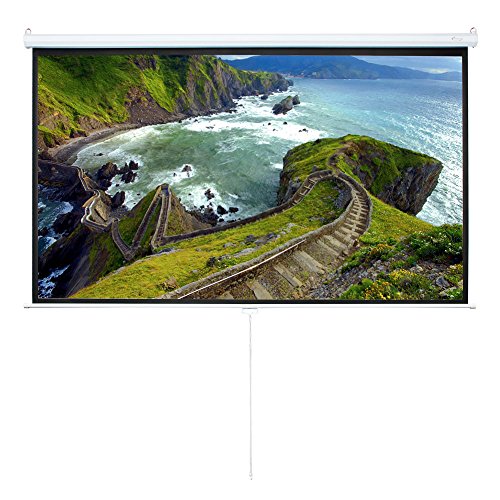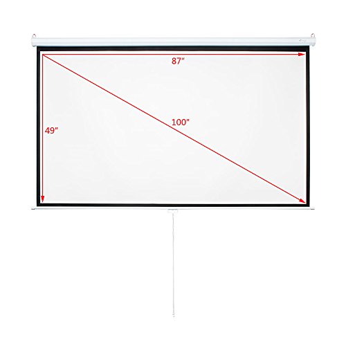 Studio : Olymstore Publisher : Olymstore Binding : Electronics Product Description Features: 1. Ideal for home theater, public display, business, classroom etc. 2. Dual wall and ceiling installation design 3. Shelf-lock system allows you to adjust the height and aspect ratio 4. Screen surface could wipe with mild soap or water 5. Black background screen material eliminates light penetration 6.?16:9 screen format and diagonal 100" offers 87" x 49" viewing area 7. Lightweight with scratch resistant steel white case 8. Matte white viewing surface diffuses projected light uniformly Specifications: 1. Optical Technology: 1 2. Screen Fabric Color: Matte White 3. Viewing Area (W x H): 87" x 49" 4. Diagonal: 100" 5. Material: Steel PVC Fabric 6. Aspect Ratio: 16:9 7. Gain: 1:3 8. Viewing Angle: 160 Degrees 9. Folding Dimensions: (87.01 x 4.92 x 1.97)" / (221 x 12 x 5)cm (L x W x H) 10. Weight: 243.39oz / 6900g 11. Suitable for: Home Theater Movies, Classroom Training, Conference Room Presentations, Public Display, Etc ? Package Includes: 1 x 100" 16:9 Projector Screen 1 x Instruction 2 x Screw Hooks