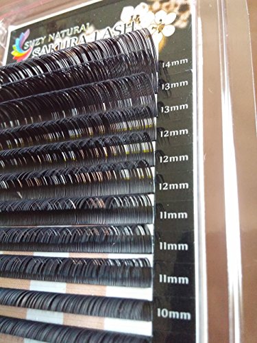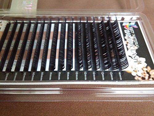 SAKURA LASH Premium Silk Eyelash Extensions ~ C Curl / 0.20 Thickness / Mixed Lengths (8mm to 14mm) ~ 16 Row Trays