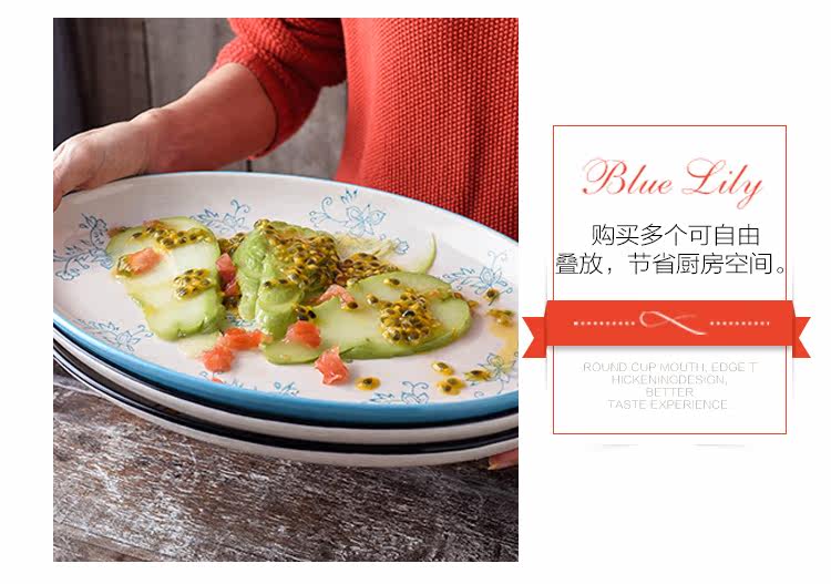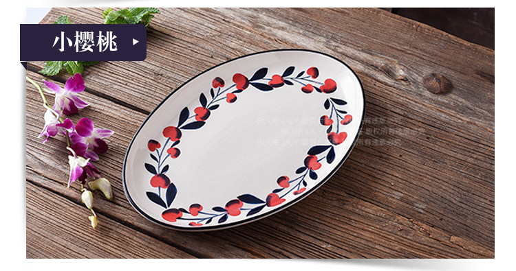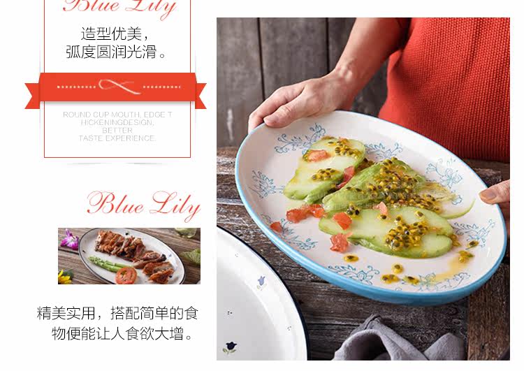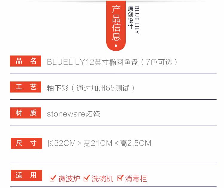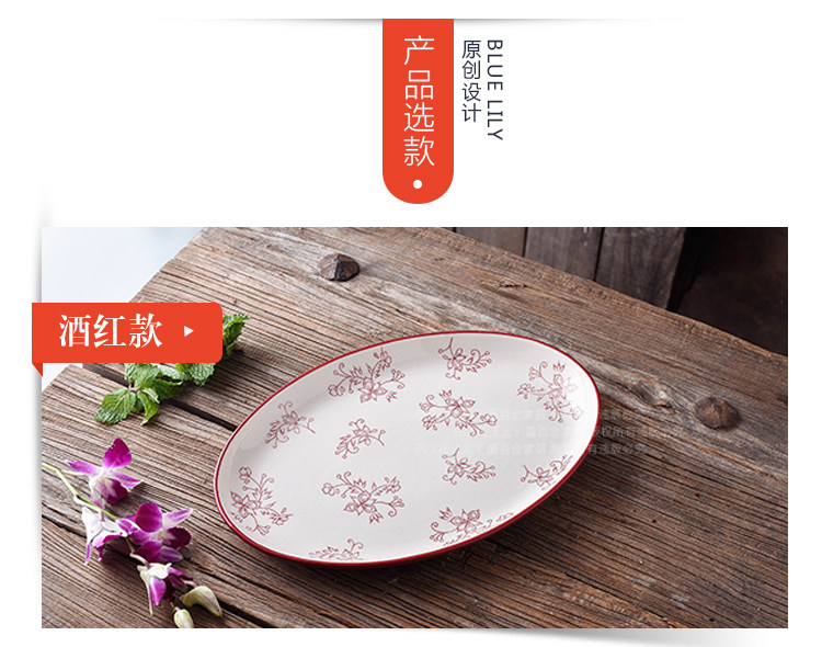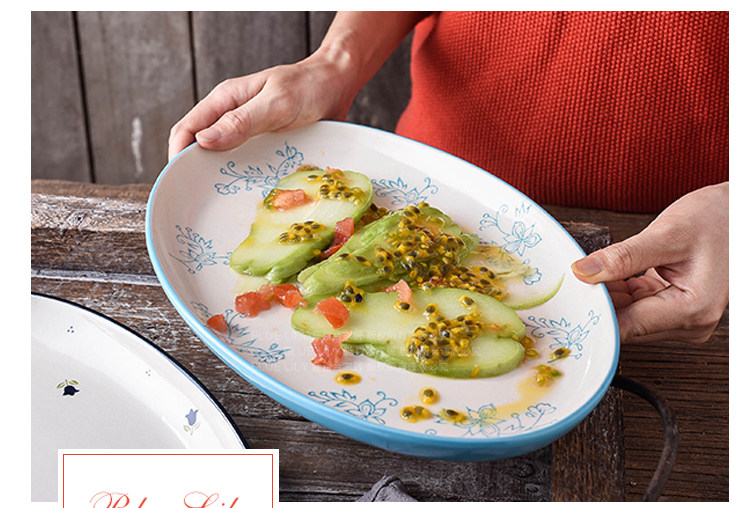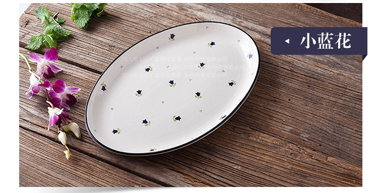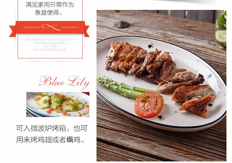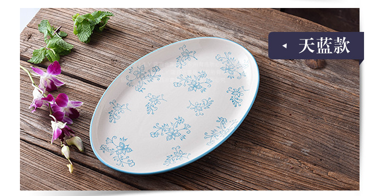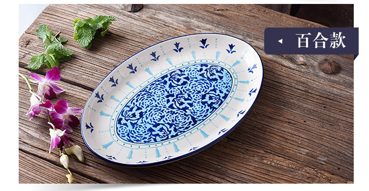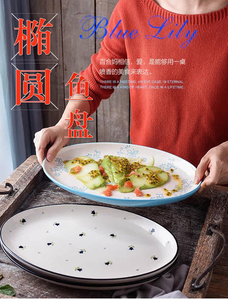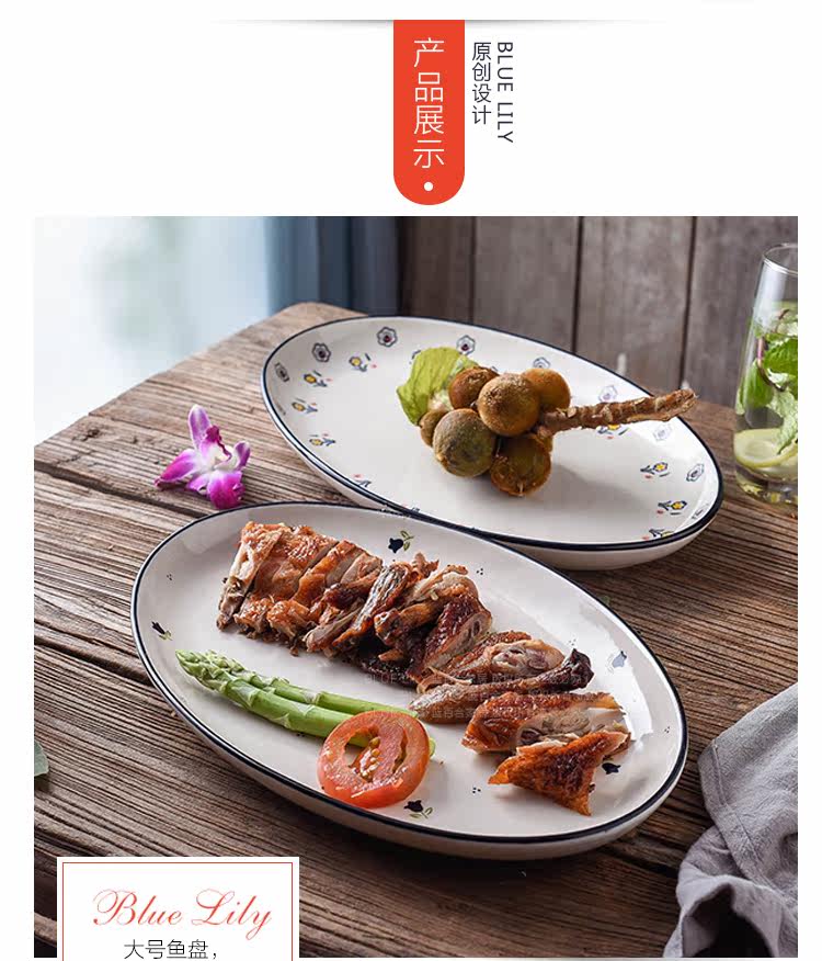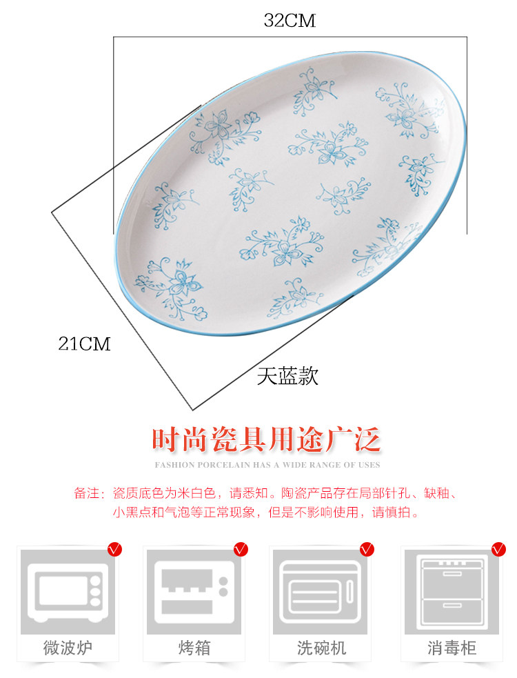 12英寸鱼盘釉下彩陶瓷餐具中式家用厨房炒菜蒸鱼椭圆形盘子