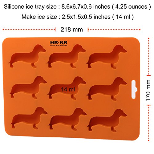 Product Description 9 Cavity - Dachshund Dog Shaped Silicone Ice Cube Tray Flexible Ice Chocolate Candy Mold Ice Maker (Coral Gold)
