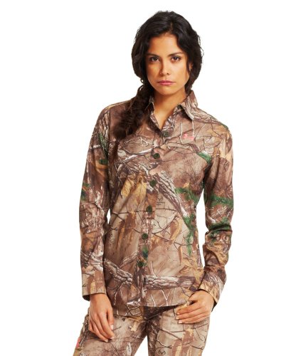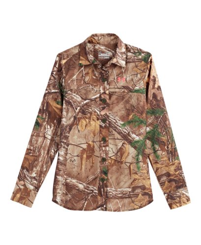Ultra-durable rip-stop construction delivers a heavy-duty lightweight fit. Quick-dry construction wicks moisture to keep you drier, lighter, and more comfortable. Lightweight stretch construction improves mobility for full range of motion. Classic button front with shaped hem for enhanced coverage without looking big and bulky. Hidden front chest pocket. Allover camo print. Polyester. Imported.Feature