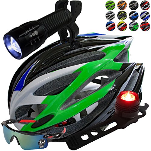 -. Title : 【K’s Factory】 超 軽量 自転車 用 ヘルメット 豪華4点セット ① ヘルメット ( アジャスター サイズ調節 可能) ② ハンディ ライト ( 500 ルーメン 照射距離 200m 自転車 フロントライト ) ③ アルミ 合金 製 テールライト ( 点灯 / 点滅 計 3パターン ) ④ フロントライト ホルダー ( 360度 角度調整 ラバーマウント ) 高剛性 通勤 通学 サイクル 安心 安全カラー 自転車 ヘルメット ハンディライト