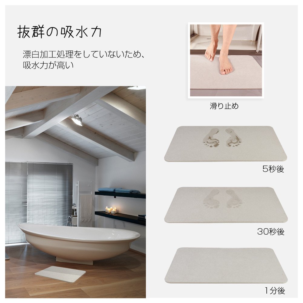 The bath mat is made from diatomite, and both the front side and the back side are hard to slip, so you can use it safely.