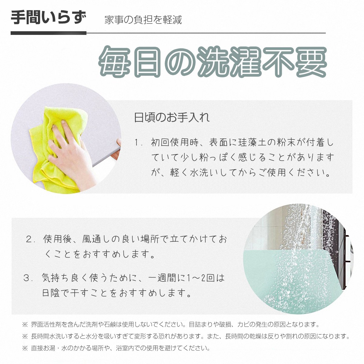 ※ When using for the first time, the surface may feel a little powdery, but it is a diatomaceous earth powder which must be inevitably attached at the time of manufacturing.