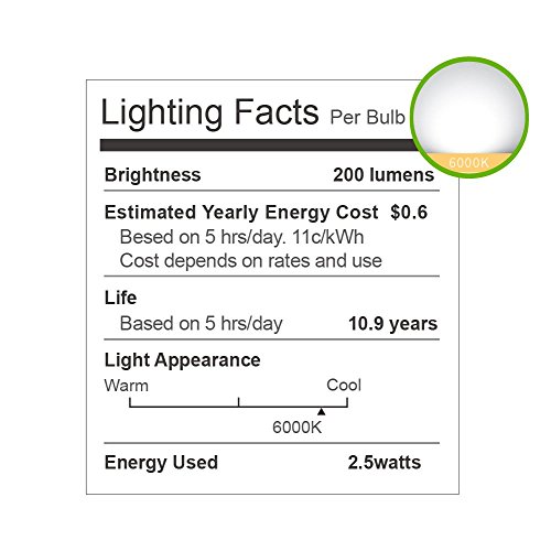 - MORE ENERGY-SAVING: A perfect replacement of 25W incandescent bulb by this 2.5W LED bulb, saving up 72% of your bills