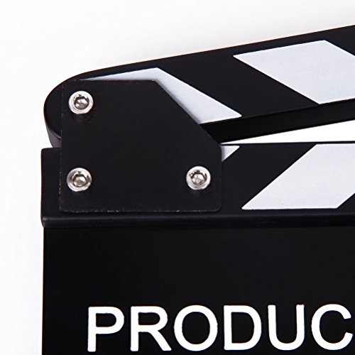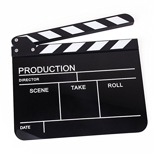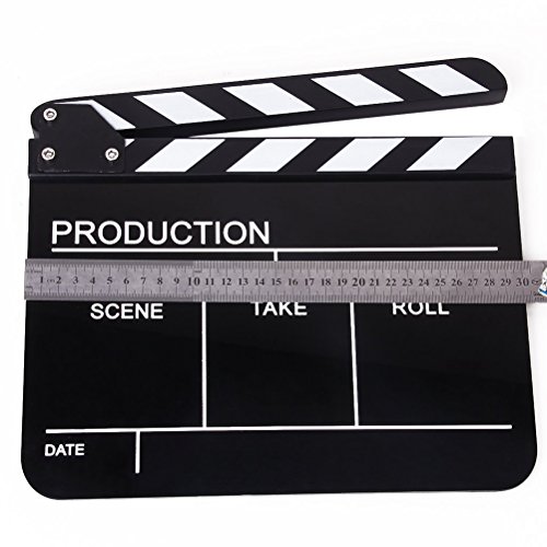 The item is a professional English veion clapper board, which is made of durable acrylic and wood materials, and an essential gadget for making a film or movie. Bolt in sticks can be adjusted if needed. Engraved English lettering for durable to use. Therefore, it is really a wonderful clap-stick for choice.