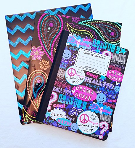 -. Feature : Each set includes one glitter folder, one full-color graphic folder and one bold & bright wide-rule composition notebook. / School should be fun and so should school supplies! Add personality to your school or office work with these bright, graphic designs. / Perfect for back to school shopping!