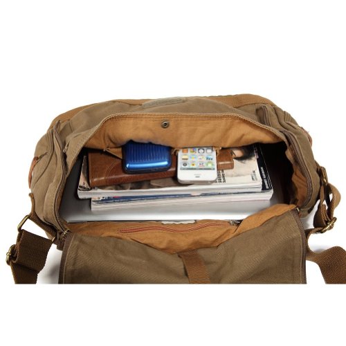 - Title : Kattee Designer Canvas Messenger Shoulder Bag Tote, Fit Ipad 14 Inch Laptop (Army Green)