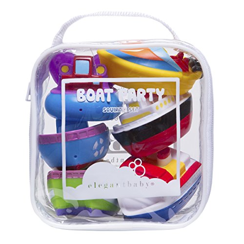 Elegant Baby Bath Time Fun Rubber Water Squirties Vinyl Zip Storage Bag, Boat Party, Set of 6