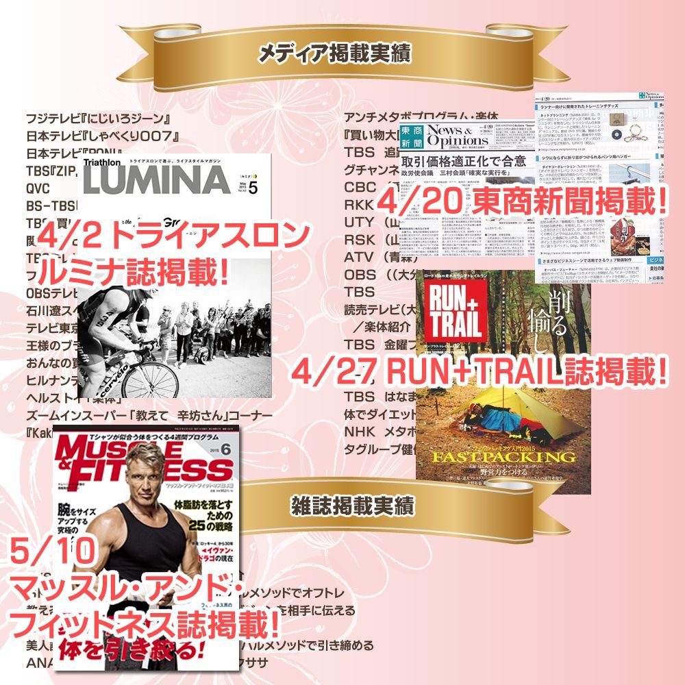 Fuji Sankei Business Eye published on April 1 / Imperial Palace Soba RUNPIT Posted on April 1 / Triathlon Lumina magazine published on April 2 / Tosho Shimbun published April 20 / RUN + TRAIL magazine published on April 27 / Jognet posted /