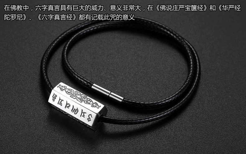 六字大明咒,发音没有规定,有多种版本,常见的是:唵(ong)嘛(ma)呢(nī)叭(bā)咪(mī)吽(hōng)。是大慈大悲观世音菩萨咒,源于梵文中,代表一切诸菩萨的慈悲与加持。六字大明咒是“唵啊吽”三字的扩展,其内涵异常丰富、奥妙无穷、至高无上,蕴藏了宇宙中的大能力、大智慧、大慈悲。此咒即是观世音菩萨的微妙本心。他代表观音(四臂观音)关闭六道之门,使众生从痛苦中解脱,往生清净极乐净土的纯佛教理念。“六字真言”是观世音的名号,见佛陀语录《佛说庄严宝箧经》和《华严经陀罗尼》、《六字真言经》等。在《西游记》当中,孙悟空被压在五行山下以后想要挣脱出来,佛祖在山上贴了张写有唵嘛呢叭咪吽的字条贴在山上,孙悟空就出不来。