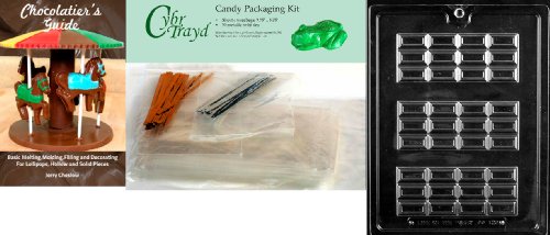 Cybrtrayd New Break Apart Bar All Occasions Chocolate Candy Mold with Chocolatier's Bundle, Includes 50 Cello Bags, 50 Twist Ties and Chocolatier's Guide