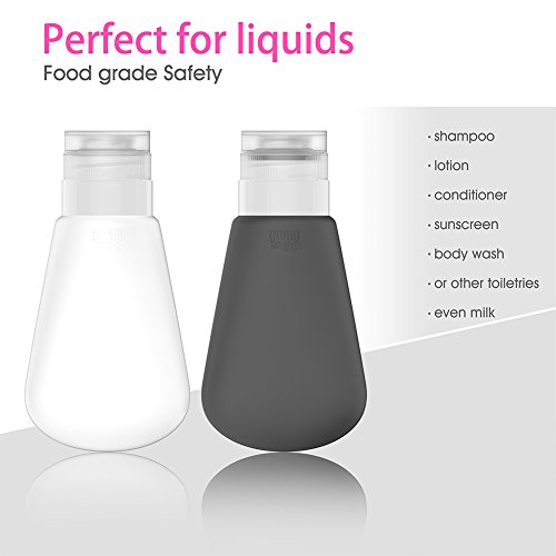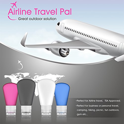 - 【FOOD GRADE SAFETY, BPA FREE GUARANTEED!】 Our FDA Certificated airline silicone travel containers for toiletries are 100% BPA Free.These silicone travel bottles are perfect for shampoo, lotion, conditioner, face wash, body wash, sunblock, come with a zippered clear toiletry bag, portable, compact, easy solution to security check-ins. Food grade silicon also suitable for salad dressing, ketchup, mustard etc. in your lunch box. :D