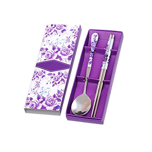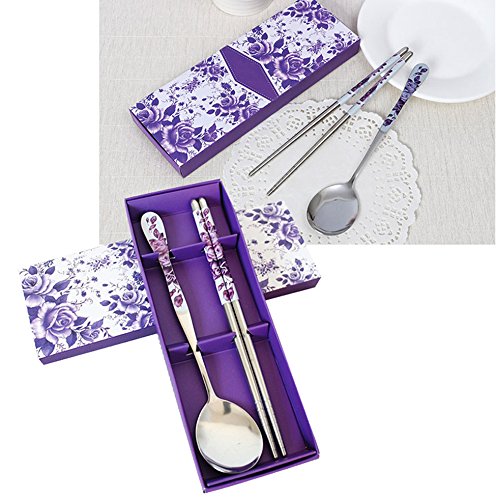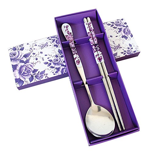 -. Feature : Chinese style gift set. / Beautiful rose pattern. / Great gifts for your friends and yourself. / Material::high quality stainless steel. / Package include: 1 pair chopsticks; 1 pcs spoon.