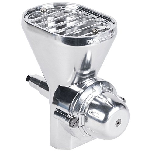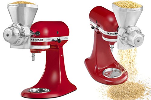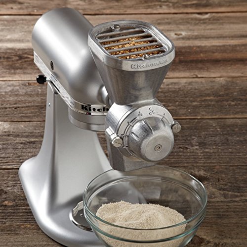 This all-metal attachment grinds wheat, oats, corn, rice, and other low-moisture, low-oil grains. Using freshly milled grains brings a hearty taste and texture to your baked goods. When you bake with home ground flour you will get all of the good you could possibly get from a grain. Choose from ''cracked'' to extra-fine consistency. Includes a cleaning brush.