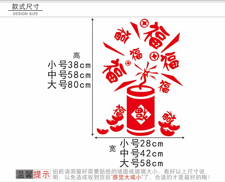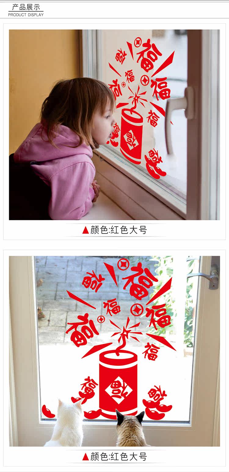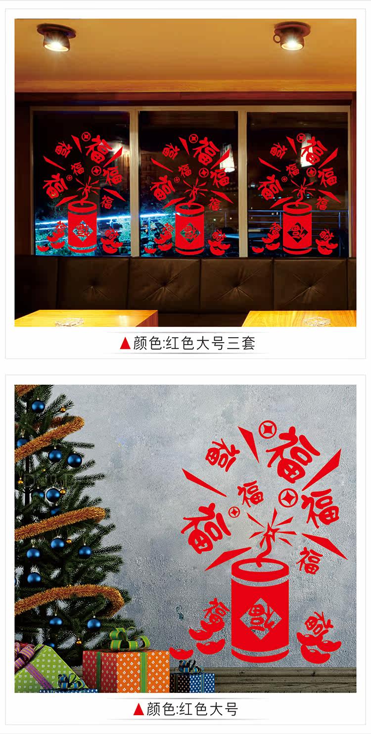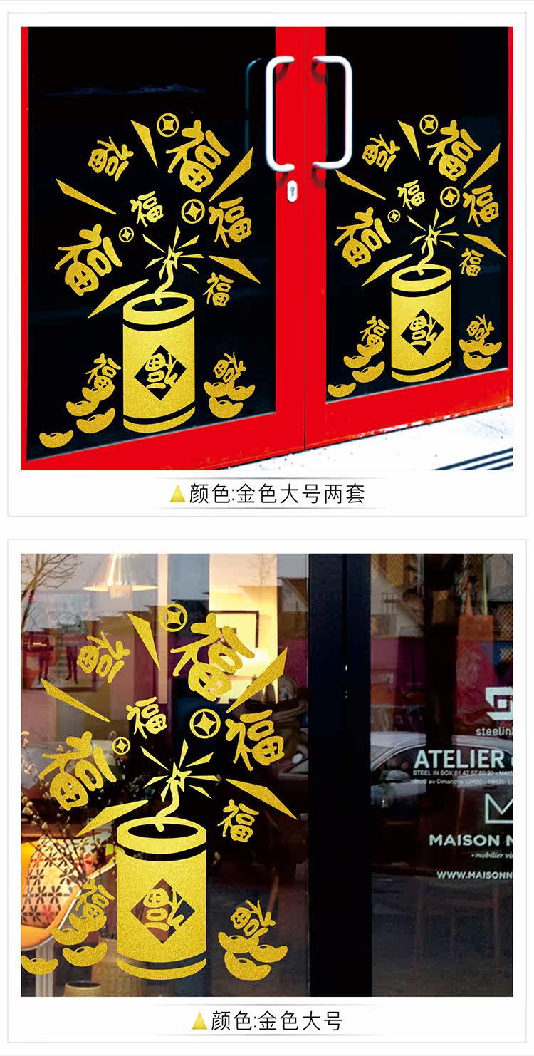 新春福字鞭炮玻璃窗户喜庆贴纸过年店铺玻璃窗花贴门贴画布置场景
