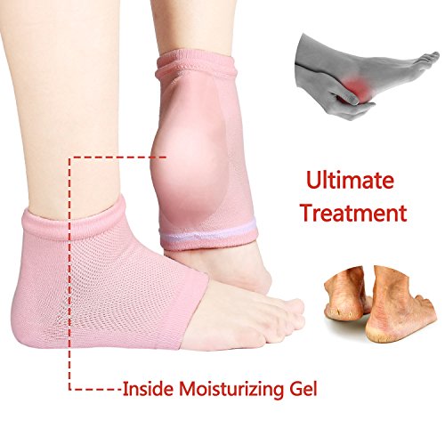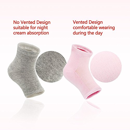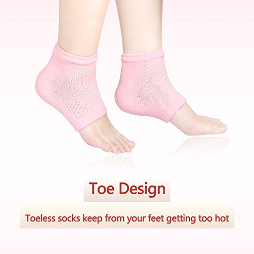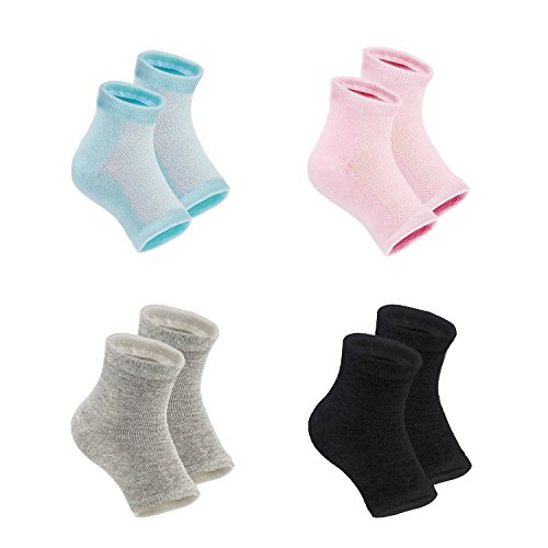 Delicate design: The front side with vented breathable design which allows for a comfortable wearing during the day; And the front side with no vented design which is suitable for wearing when sleeping at night to better absorb foot cream. Functions: You can prevent and treat cracked skin by wearing the silicone socks for better protection; The gel socks stay in place while you walk, they don't make your feet sweat or get too hot, and you even don't notice them and feel comfortable. Stretchy material: These moisturizing socks adopt stretchy material to fit most women's and men's feet; And they are washable and reusable. 4 Pairs of socks: The package includes 4 pairs of socks with 2 different designs, enough for your spare and replacement in daily life. Moisturizing heel socks: 1. Opening toe design; 2. Moisturizing the heels; 3. Softening heels; 4. Comfortable, light-weight, breathable, stretchy, open-toe; 5. Enhancing a natural and healthy look; 6. Protecting cracked/ dry heels; 7. Protecting your wounded heels. How to use: 1. Soak and wash your feet in warm water. 2. Wait until your dry skin has softened. 3. Rub gently over the callused area, then dry your skin. 4. Apply some feet cream. 5. Wear the heel socks. Specification: Material: cotton and gel Size: one size fits most Color: turquoise, pink, grey, black Quantity: 4 pairs Package includes: 4 Pairs of gel socks 0