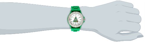 -. Feature : Highest standard quartz movement / Petite rhinestone encrusted silver bezel / White dial with christmas tree in the center; silver numerals and hands / Green silicone band and buckle