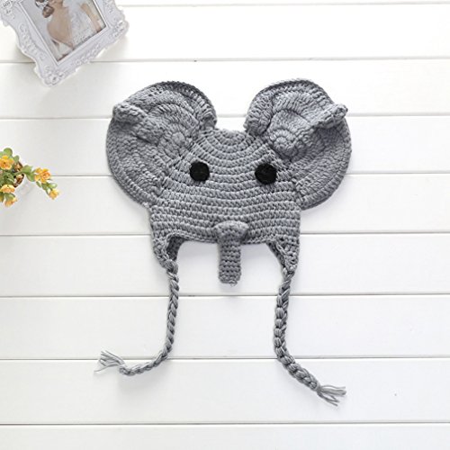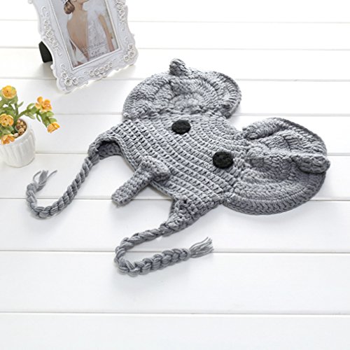Details: 1. Include: A Vivid Elephant Shape Hat for Newborn Baby Photo Shooting. 2. Material: High Quality Milk Cotton (Soft Harmless to skin), 100% Handmade Crochet/Knitted Outfits. 3. Suitable for 0-3 Months Newborn Baby(For Reference Only). 4. Hat/ Head Circumference: 14.5inch-15.3inch/ 37cm-39cm. 5. Hat Flat-laid position measurement: 7.5inchx5.9inch/ 19cmx15cm.