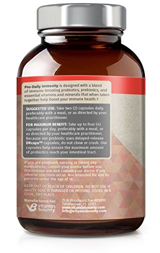 Pro-Daily Immunity - The most effective probiotics on the market for boosting and supporting your immune and digestive health. Vitamin Bounty hand-picked 10 of nature's most powerful and effective strains of probiotics that have been shown to benefit your immune system, in order to give you the maximum results. We don't use fillers to bulk out our capsules, meaning you only have to take a few small capsules to get the same effect as taking a handful of large, hard-to-swallow pills from some of our competitors.Feature