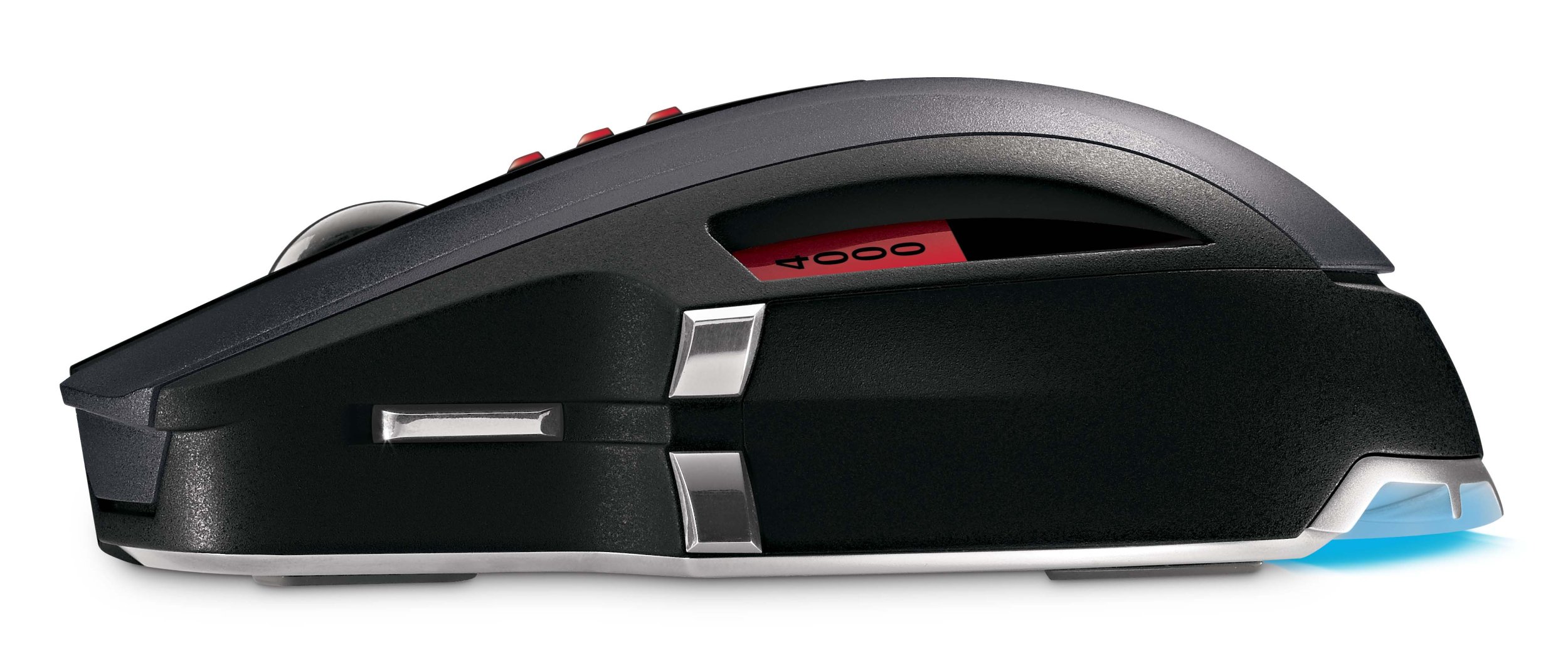 By changing the resolution with the three buttons in the center of the main unit, you can instantly switch the pointer sensitivity to low, medium and high (250 to 4,000 dpi).