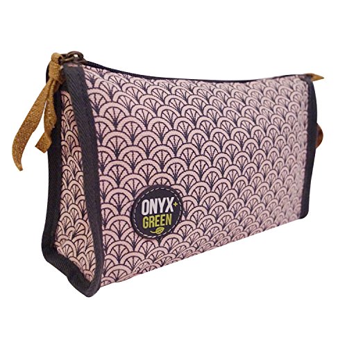Onyx and Green NEW Classic Patterned Pencil Pouch with Gusset, made from Ramie Leaf/Cotton Blend, Pink (7212)