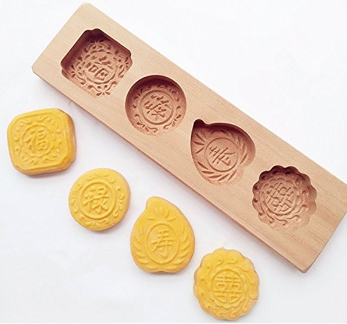 Dr.Luck Wooden Muffin And Mooncake Cups Handmade Biscuit Chocolate Ice Cake Mold(Fu Lu Shou Xi)