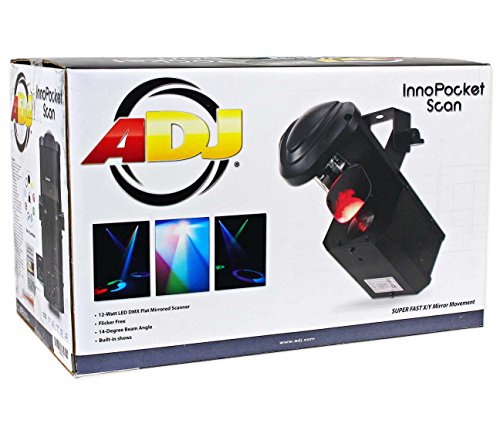 Studio : ADJ Products Publisher : ADJ Products Binding : Electronics Product Description It's time for a Scanner revolution! With it's compact size and light weight, the ADJ Inno Pocket Scan is an ideal lighting effect for any mobile entertainer, small nightclub, bar our lounge and for Bowling and entertainment centers. This fixtures features a bright 12-Watt LED engine and 12 exciting built-in light shows in a very compact, mobile case. This pocket sized, flat mirrored Scanner has a 14-degrees beam angle that projects 8 fixed GOBO/Color patterns (plus spot/white) from a single wheel. The Inno Pocket Spot is built with high quality, precision stepper motors for speed and accuracy. The fast mirror speed means that the Inno Pocket Scan is great for high energy music, and provides a great compliment to Moving Head effects for pure lighting excitement. 0