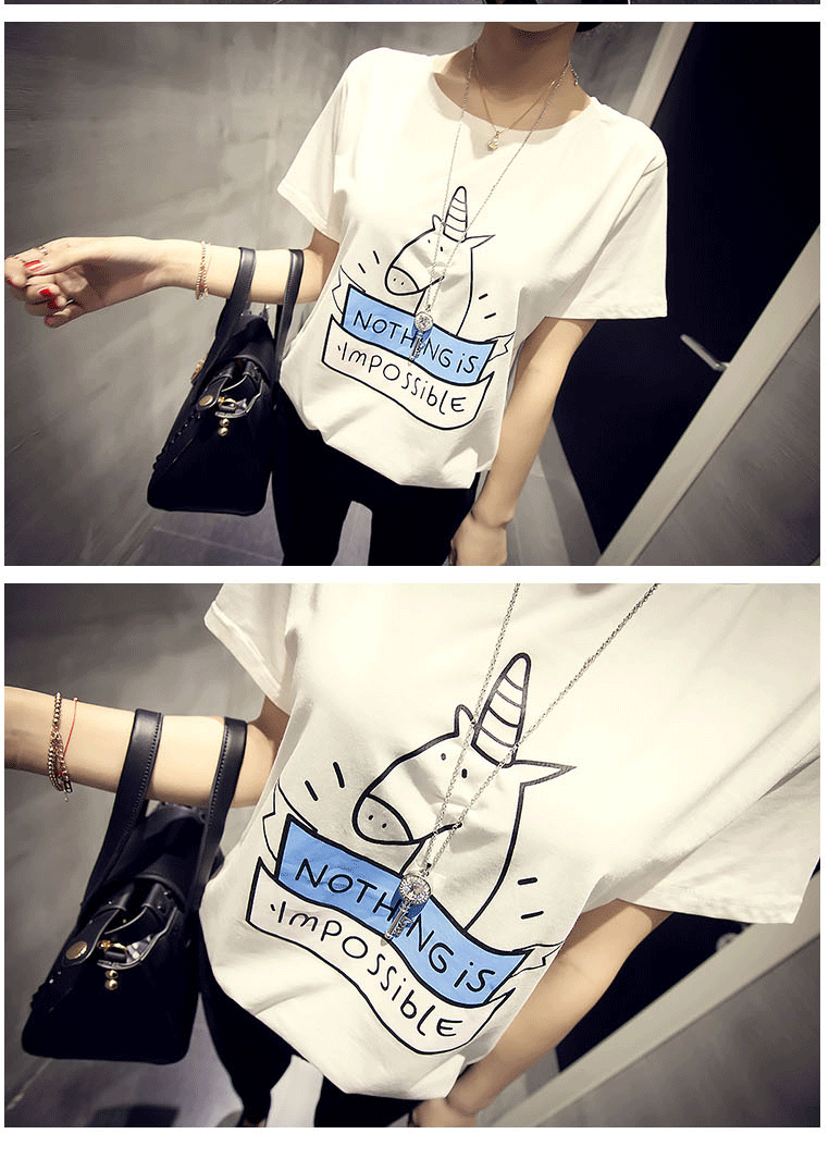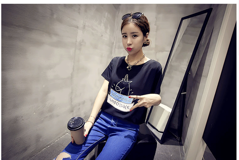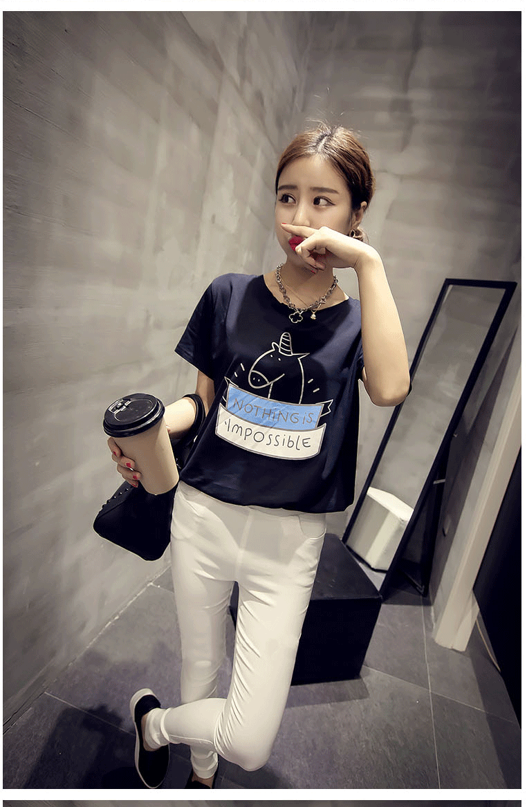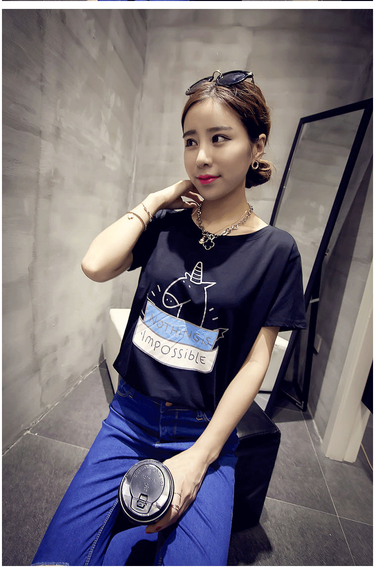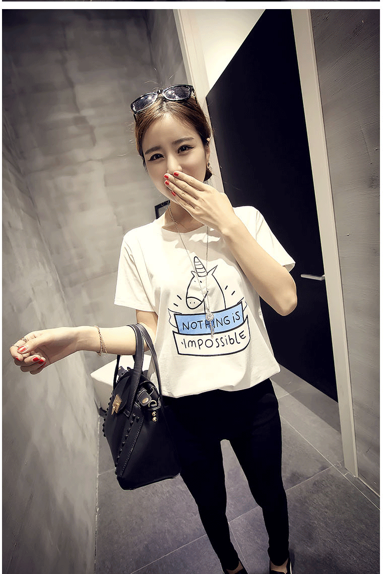T恤女夏季韩版学生宽松短袖条纹体恤半袖女装闺蜜姐妹卡通上衣潮