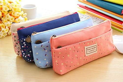 - Feature : 4 pcs Pastorable Floral Canvas Pencil Pen Bag Makeup Pounch / Double zipper design with two pockets, can be layered placed according to the volume of goods. Zippers on the sealing design, smooth, tight protection / Durable, washable canvas construction features upper and lower flaps to keep pencils in place and protect the tips. To hold pens, pencils and multiple other uses. Can be used as pencil case,Cosmetic bags,Cell phone bag and coins bag. / Size: approx 21*10*3cm. Weight: 45g / Color: Beige,Pink,Blue,Dark Blue