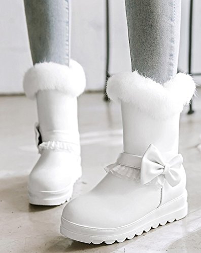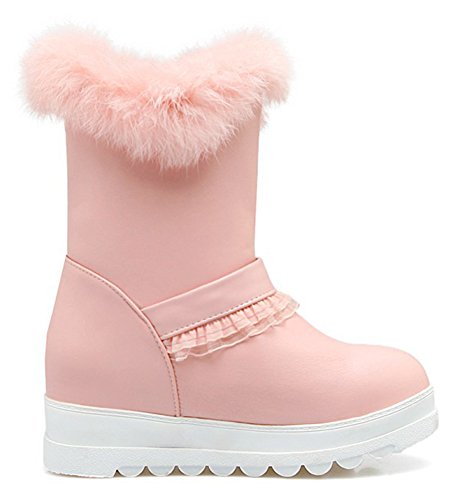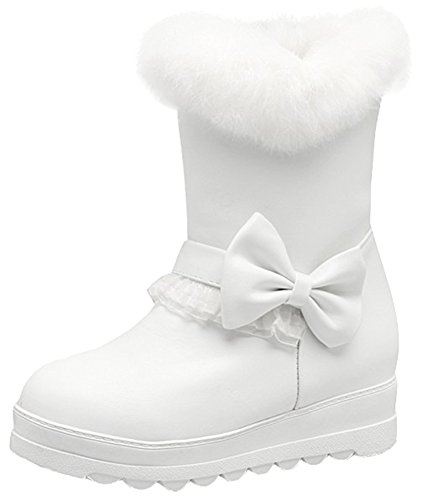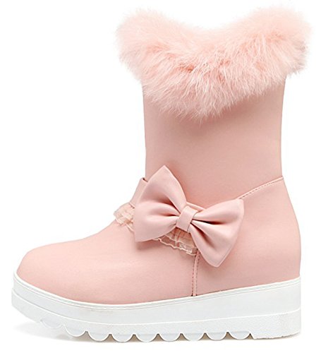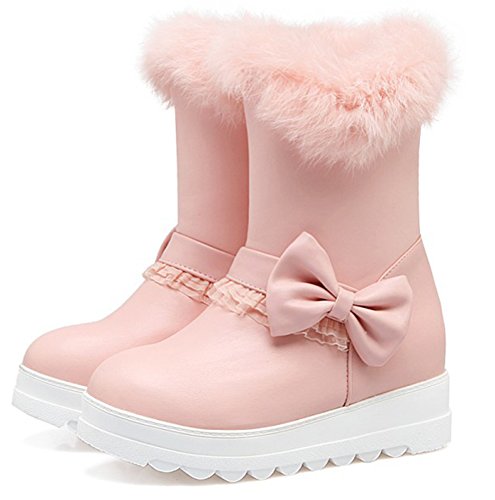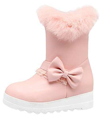 Binding : Apparel Product Description This pair of shoes is for women, girls, office workers and young ladies. You will look fashion and stylish when wearing them. The heels measures 2.4 inches. You will look slimmer and slender in their mid heel. So you will not feel too tired when walking with them. This pair of shoes features solid waterproof upper and pull on closure. You will look sweet in their round toe and bow. The decoration of furry faux fur will offer you a sweet look. The faux fur lined design will warm you all the winter. The sole is made of good rubber. You will feel comfortable in their soft bottom. They are of high quality and durable. 0
